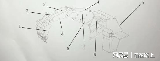 礦用挖掘式裝載機(扒渣機)的挖掘裝載分為9個部分組成,主要有挖斗、挖斗連接板、小臂油缸、大臂油缸、龍門、牛頭回轉(zhuǎn)座、大臂、支撐油缸和小臂9個部分。挖掘裝載部分主要包括回轉(zhuǎn)架、回轉(zhuǎn)體、大臂、小臂、鏟斗、大臂油缸、鏟斗油缸、回轉(zhuǎn)油缸等。挖掘系統(tǒng)采用反鏟結(jié)構(gòu),通過回轉(zhuǎn)軸與回轉(zhuǎn)架、回轉(zhuǎn)體聯(lián)接,操控液壓系統(tǒng)可控制大臂油缸、小臂油缸、鏟斗油缸、回轉(zhuǎn)油缸動作,并帶動大臂、小臂、挖斗、回轉(zhuǎn)體協(xié)調(diào)工作,實現(xiàn)挖掘、采集、裝料功能,從而完成礦石、渣料的收集?;竞屯诰驒C原理一樣。